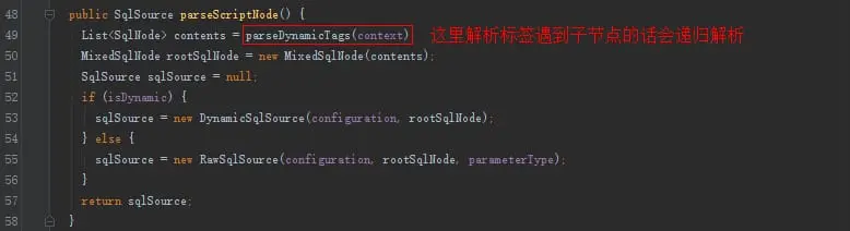 parseDynamicTags方法的返回值是一个List,也就是一个Sql节点集合。SqlNode本文一开始已经介绍,分析完解析过程之后会说一下各个SqlNode类型的作用。