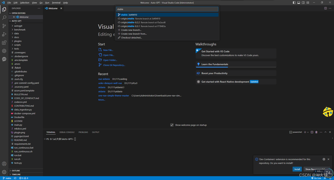 首要任务:选择 origin/stable 分支,避免奇怪的 Bug。