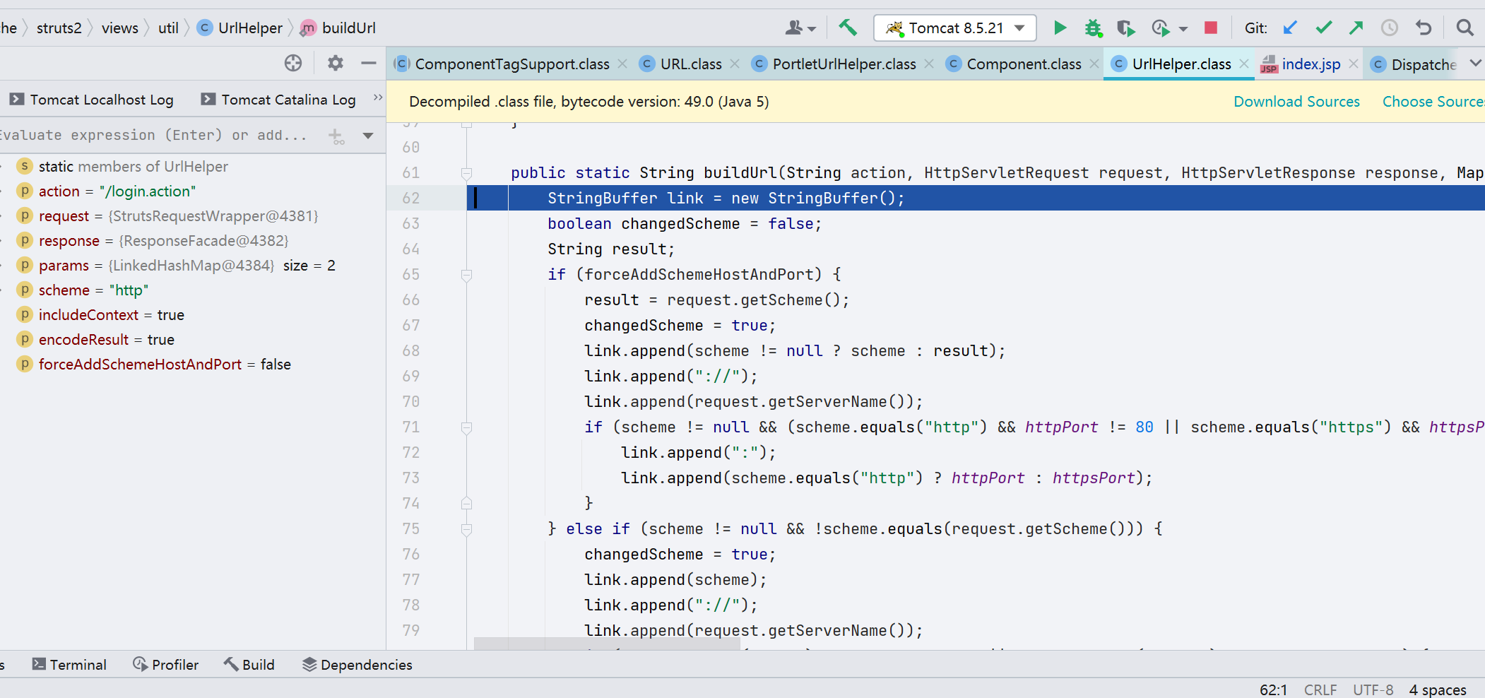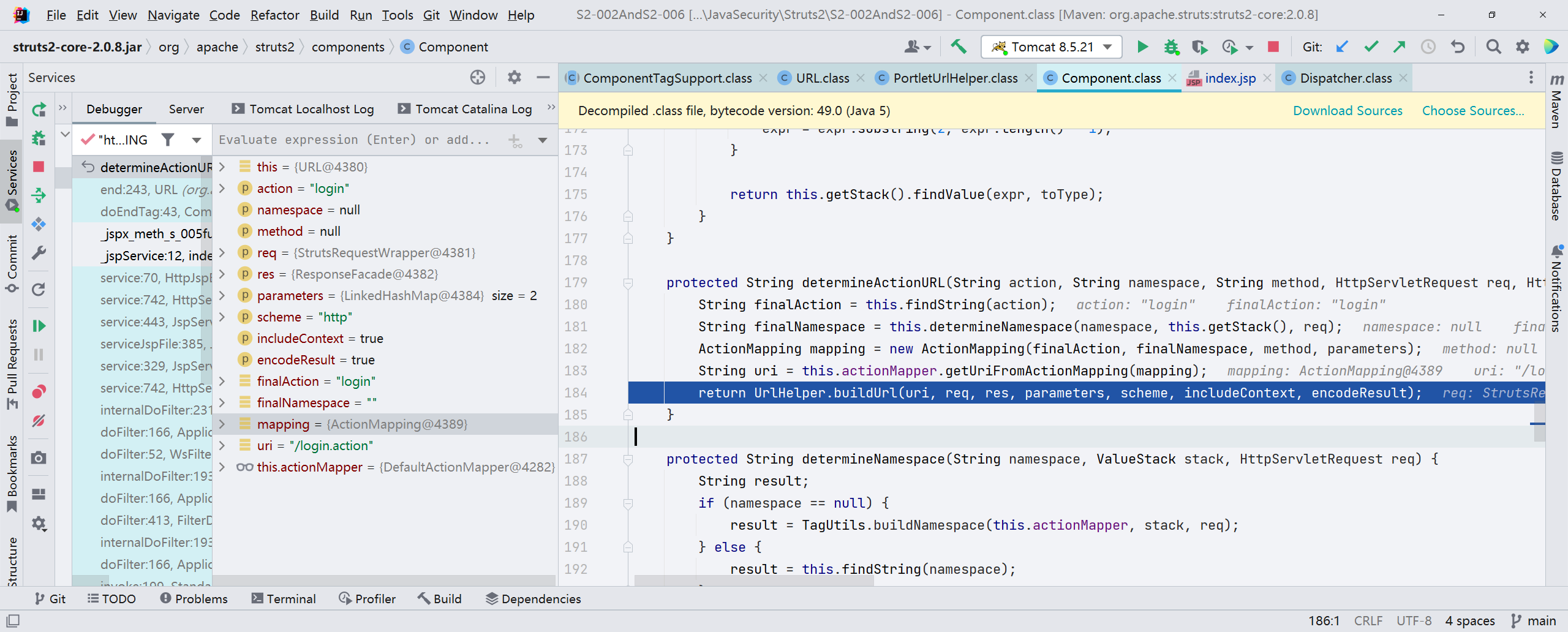 determineActionURL() 方法先定位到了对应的 action,再进行 buildUrl() 的操作,跟进 buildUrl()