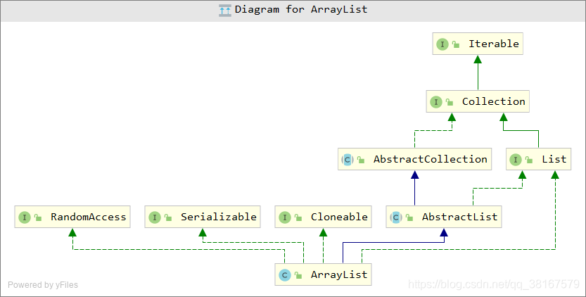 其中RandomAccess,Cloneable,Serializable都是标记接口,暂时不去管它。