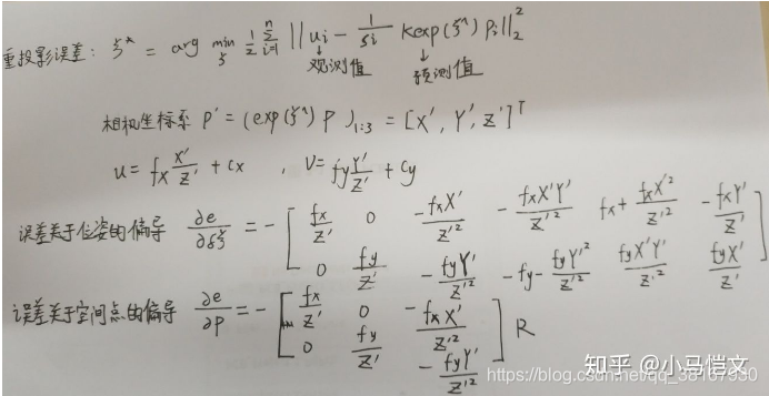 52. 重投影误差的表达式,误差关于位姿的偏导数怎么算?误差关于空间点的偏导数怎么计算?