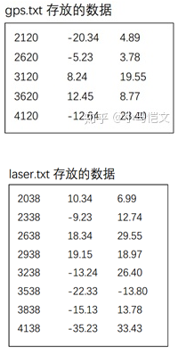 工程目录下有GPS保存的坐标文件gps.txt和激光雷达保存的坐标文件laser.txt两个文件,两个文件的第一列为记录当前数据的时间戳,后两列为坐标。由于GPS每隔500时间单位保存一次数据,激光雷达每隔300时间单位保存一次数据,因此,一段时间内激光雷达保存的数据比GPS保存的数据要多。现在想取出两个文件中时间戳最接近的数据,并分别存放在gps2.txt和laser2.txt中,编写程序实现。(不知道哪位大神能讲下这道题。。。)