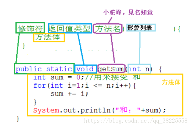 注意:这里修饰符可以有也可以没有,但返回值类型、方法名是必须有的