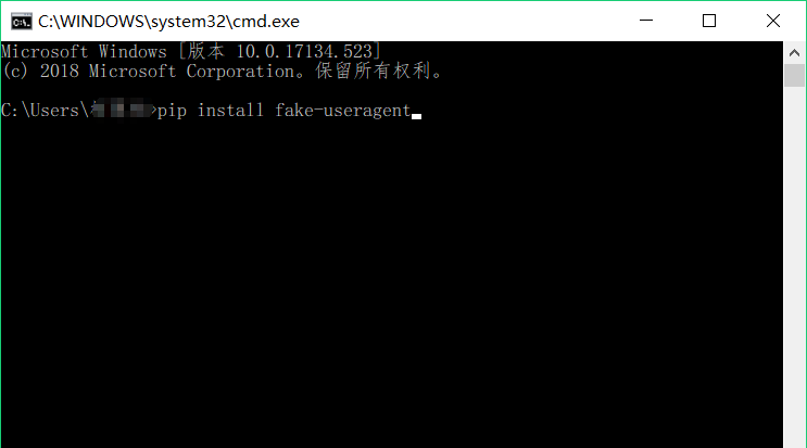 在命令行中输入pip install fake-useragent即可完成安装。