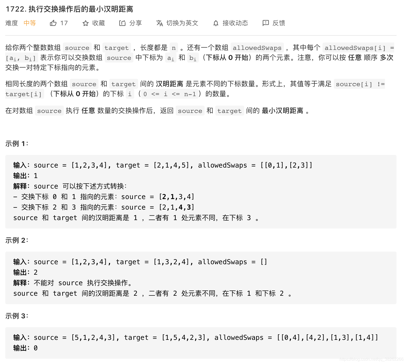 - 对每个集合对应的下表排序, 因为一个集合中的下标是可以随便排列的,souce=[1,2,3,4]每个集合子集排序后是[1,2,3,4],target每个子集排序后是[1,2,4,5]