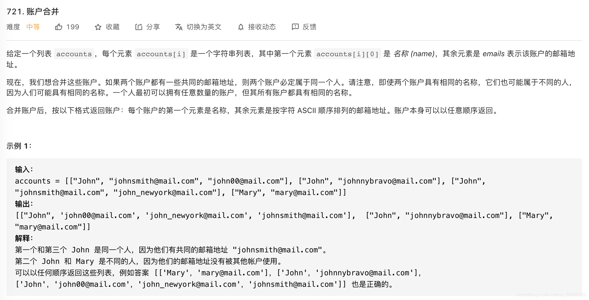 - 因为要使用并查集,所以要建立每个邮箱的地址:<邮箱, 索引>