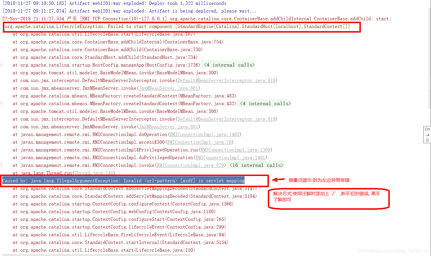 2: Caused by: java.lang.IllegalArgumentException: Invalid <url-pattern> [asdf] in servlet mapping