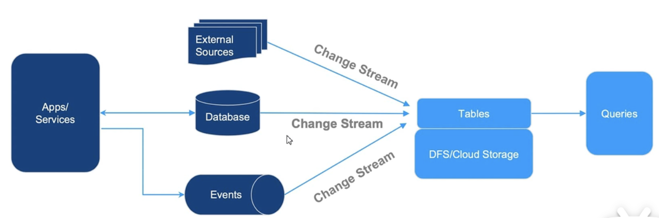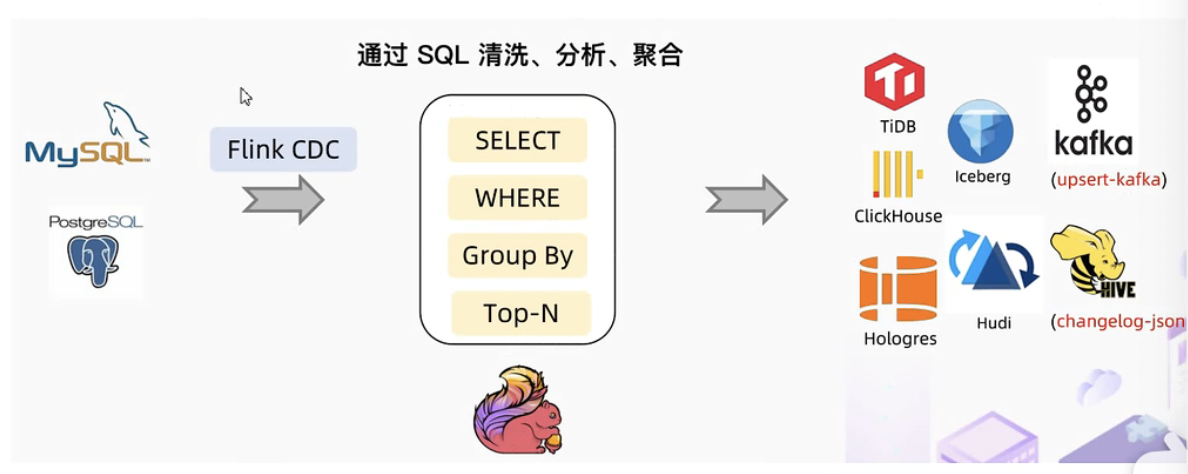 基于CDC数据的入湖,架构:上游各种各样的数据源,比如DB的变更数据、事件流,以及各种外部数据源,都可以通过变更流的方式写入表中,再进行外部的查询分析