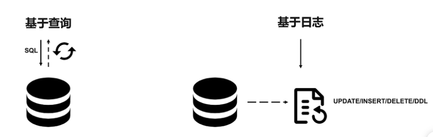 1.基于查询的,客户端会通过SQL方式查询源库表变更数据,然后对外发送。