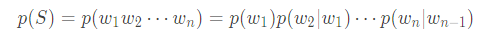于是就算出了“I want chinese food”这句话的概率,同理你可以得到“want i chinese food”的概率值很小,远小于,说明前一个句子更像人话。但有时候这句话会很长,那么概率(都是小于1的常数)的相乘很可能造成数据下溢(downflow),即很多个小于1的常数相乘会约等于0,此时可以使用log概率解决。