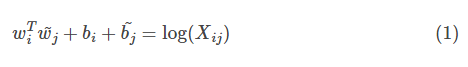 构建词向量(Word Vector)和共现矩阵之间的近似关系,通过下面的公式表示: