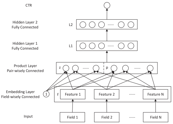 PNN是2016年上海交大团队在ICDM会议上提出的一个模型。模型的结构类似于DeepCrossing,先来看一下模型架构: