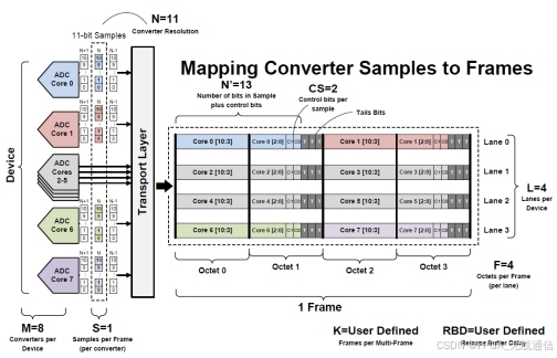 对于frame、LMFC、sampling clock 都是由device clock 时钟派生出来的;