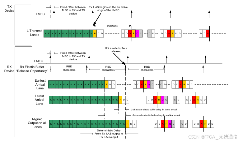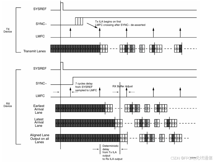 对于jesd204b来讲,从采样数据输入到 jesd204b发送端 到jesd204b接收端采样数据输出这段时间的延迟是确定的;