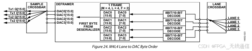 FPGA 数据通过LANE给到DAC:(ADC是采集数据给FPGA的Lane)