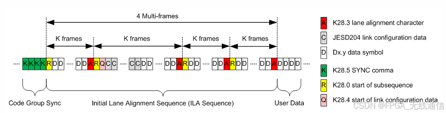 初始化LANE对齐,会发4个多帧,对齐之后才会进入用户数据传输阶段;