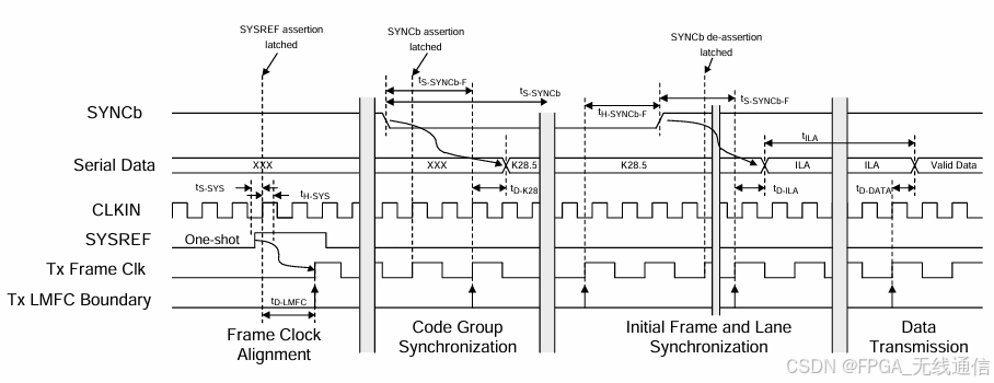 第一阶段:SYSREF产生,触发同步,产生 TX frame clk 和 LMFC clk;
