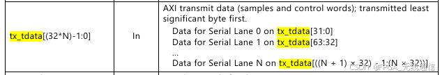 Xilinx 接口关系:32位对应一个Lane,最低的8位先发;