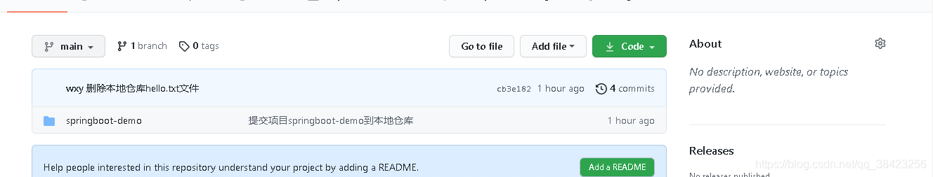 将本地仓库推动到远程仓库(这里远程仓库用的gitHub)