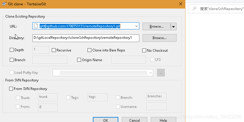 传入远程仓库ssh方式的地址,其的同上和https差不多