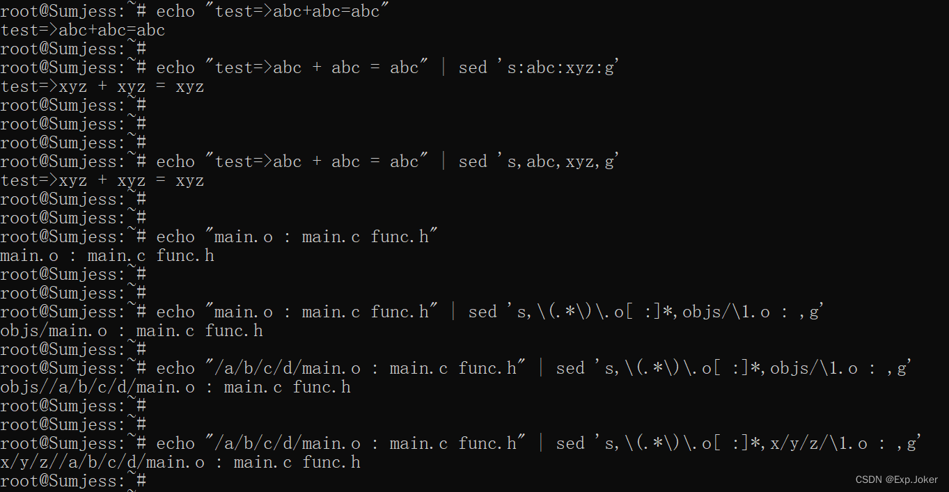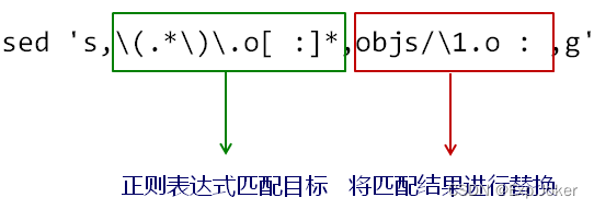 sed 's,\(.*\)\.o[ :]*,objs/\1.o : ,g'