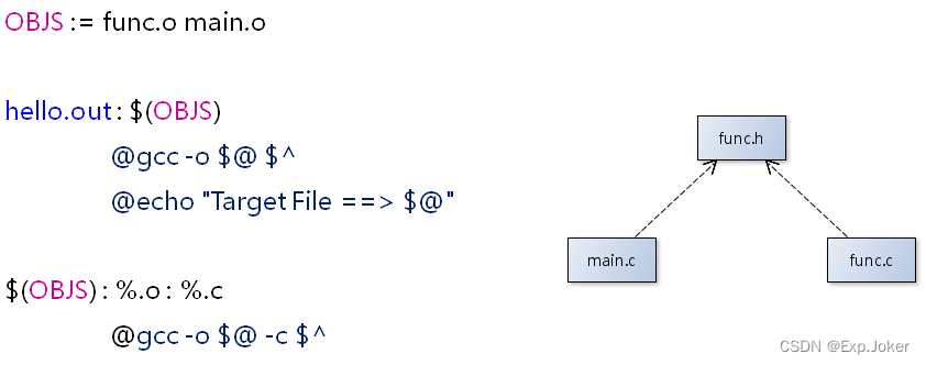 - 头文件作为依赖条出现于每个目标对应的规则中