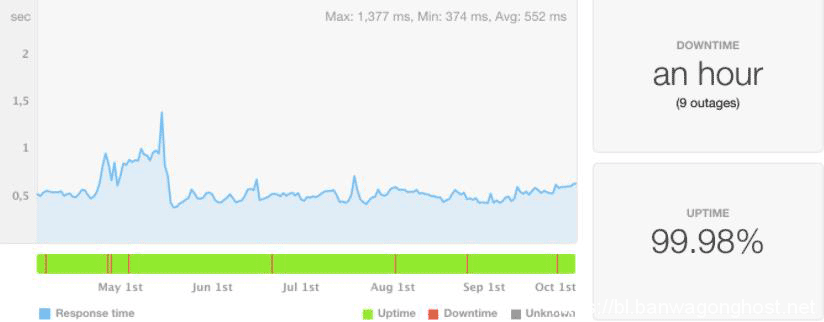 根据多个网站、用户的统计(也包括我个人的体验,曾经有3个网站在bluehost),我从来没有碰到过宕机情况,当然,我个人体验没有代表性,可以看看其他人提供的2017年的相关统计数据: