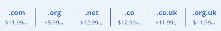 第一年免费,第二年开始付费,价格高于多数域名注册商的平均价格,每年至少14-16美元,好一点(比如好记)的域名价格还要高一些,并不是像它首页说的11.99美元,下图是bluehost在其首页的价格: