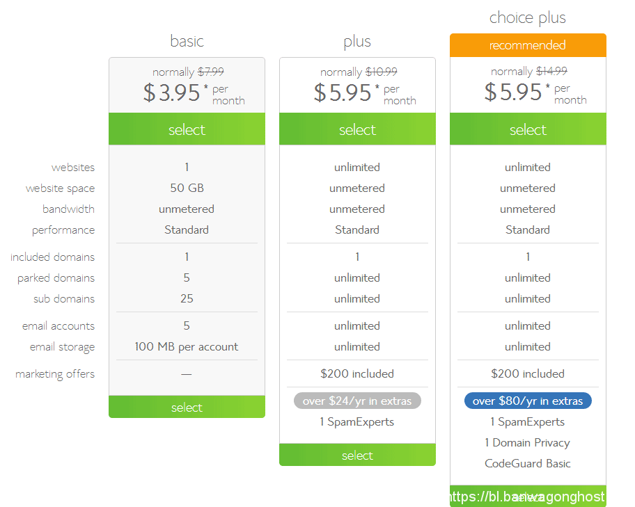很多域名商的最便宜的那种类似basic plan(名字不同,意思一样,有的叫什么start plan之类),貌似便宜,其实一点都不便宜。因为提供的是最基本的功能,随着网站的发展,你是一定要扩充的,