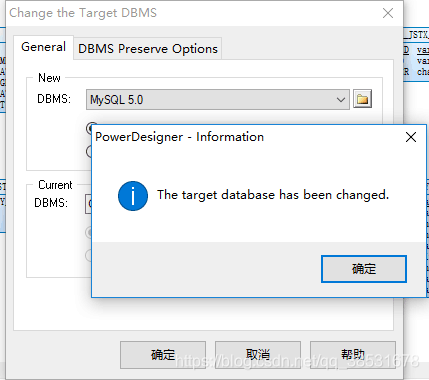 4.转换成mysql适用的数据库,从菜单栏上“Database”(数据库)—>“Change Current DBMS”