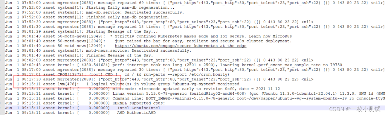 有没有大佬遇到过Ubuntu-server22.04会自己重启的呀? 大家好,有没有大佬遇到过Ubuntu-server22.04会自己重启的呀?自动更新全都关了,莫名的会凌晨重启。像下边,重启前也没有日志,过了一个小时直接重启了,有时候是半个小时。