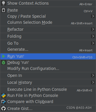 只需要在你的代码界面右键,选择“ Run 'run' ”即可;