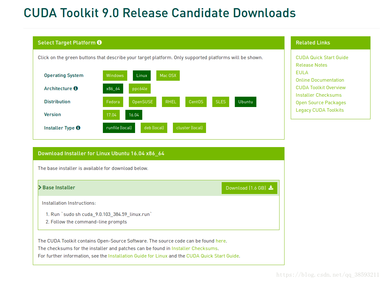 1.cuda安装:这里建议安装9.0,因为目前的9.2坑太多,不支持tf1.9,可以直接打开,有两种方式,第一个下载runfile(local),