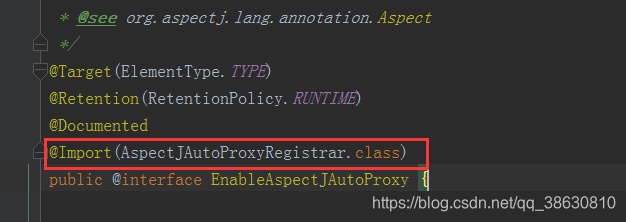 从这个注解中我们一眼就看出,他通过@Import注解引入了AspectJAutoProxyRegistrar这个类。