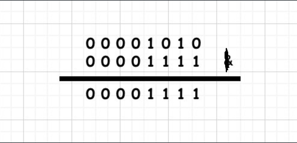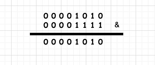 10 & 15 = 00001010 & 00001111