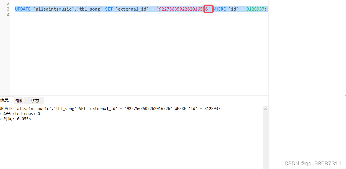 博客内容涉及到尝试更新一个超长数字,首次更新9227563502262016525成功,但将数字改为9227563502262016526时遇到问题。问题可能源于数据库字段类型的限制,需要调整字段类型以容纳更大数值。