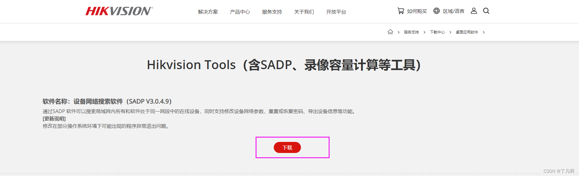 下载地址:工具软件(Hikvision Tools) - 桌面应用软件 - 海康威视Hikvision