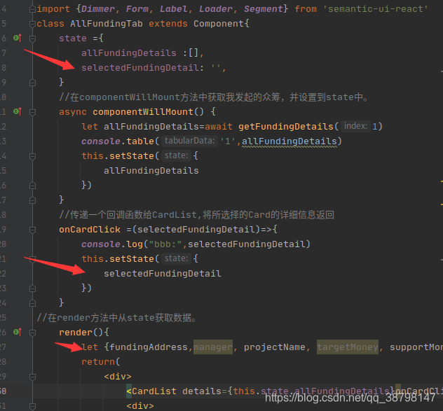 5.在AllFundingTab添加表单项,在render方法中把状态变量的数据结构出来