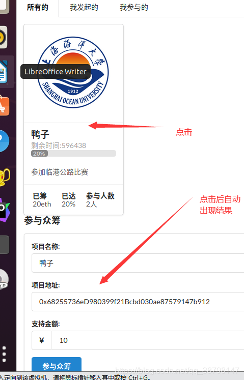 处理投资函数//需要传递选中合约地址 //创建合约实例,发起参与众筹(send,value转钱)