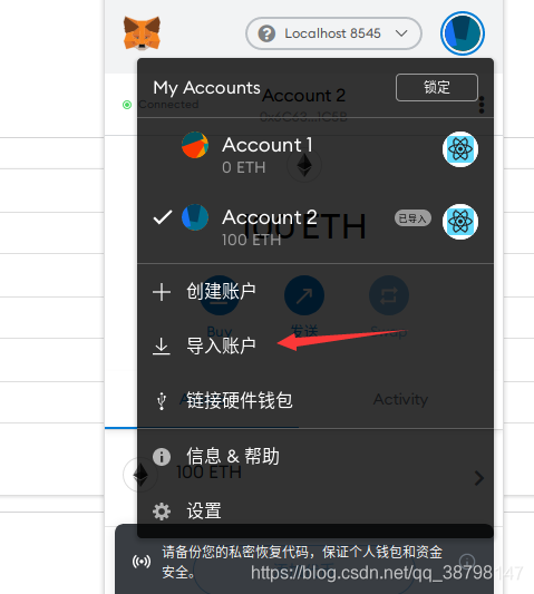 4.在metaMask钱包中添加账户