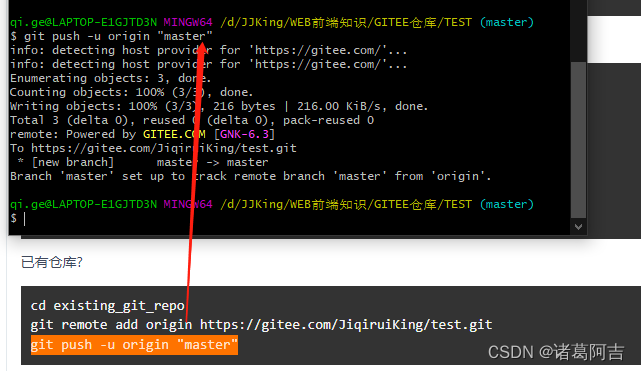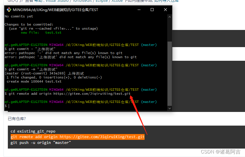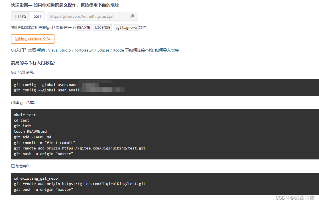 当我们本地已有仓库,不想重新创建git仓库的时候,我们直接执行“已有仓库”里面的操作,步骤如下: