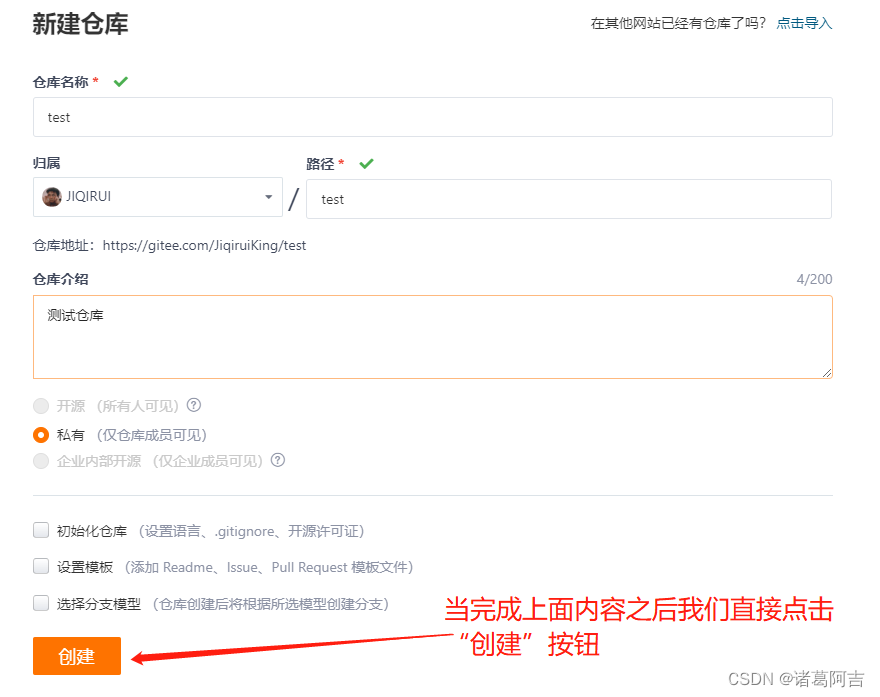 在gitee上新建仓库之后想要直接将本地仓库中的内容直接推到远程仓库中