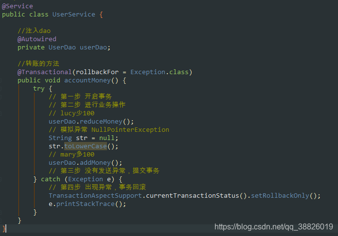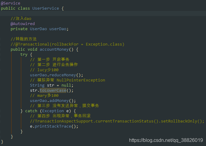// debug时会打印:加入事务失败-标记已存在事务为回滚