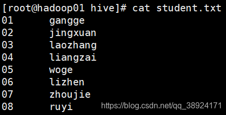 1.新建文件,这里我在/opt/hive下新建一个student.txt