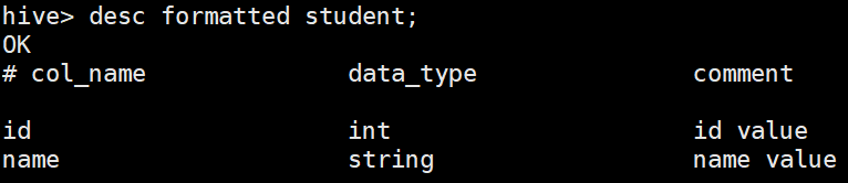 alter table student change name name string comment 'name value'; -- 给name列加注释