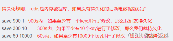 总结 : 如果redis只做普通的缓存,我们也可以不使用任何的持久化,如果对数据的要求较高我们可以同时开启rdb和aof,因为rdb虽然效率高但是他会有很多自己的一些规则,比如rdb一些恢复机制什么的,并且rdb的数据没有aof数据完整。如果rdb配置规则过于实时存储的话他会非常的消耗性能。所以各有个的优缺点,一般rdb只保留 save 900 1这条规则。