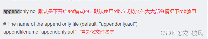 什么是AOF :将我们的所有命令都记录下来,恢复的时候就将这个文件全部在执行一遍。AOF默认是关闭的,只需要将下面配置文件改成yes就开启了。