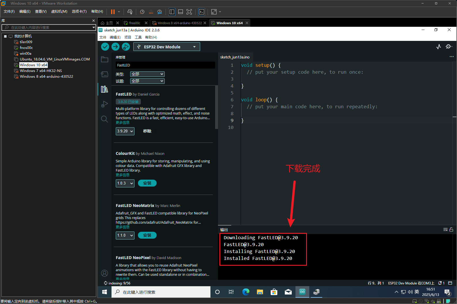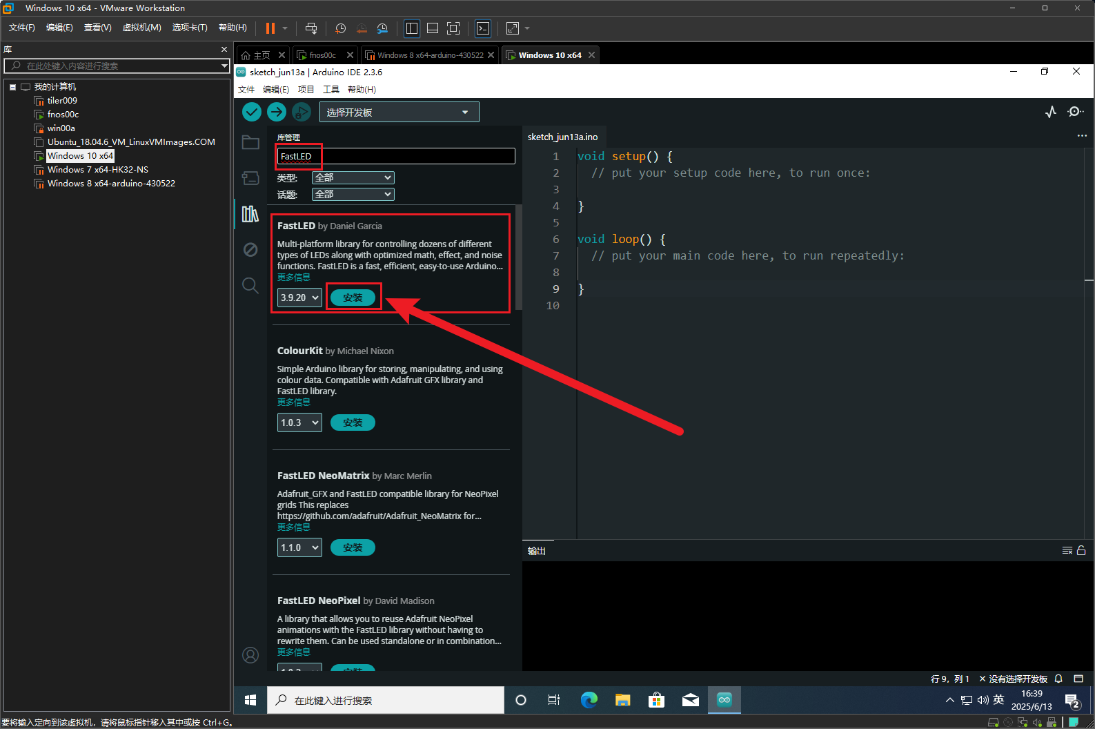 - 在库管理器窗口的搜索框中,输入 FastLED