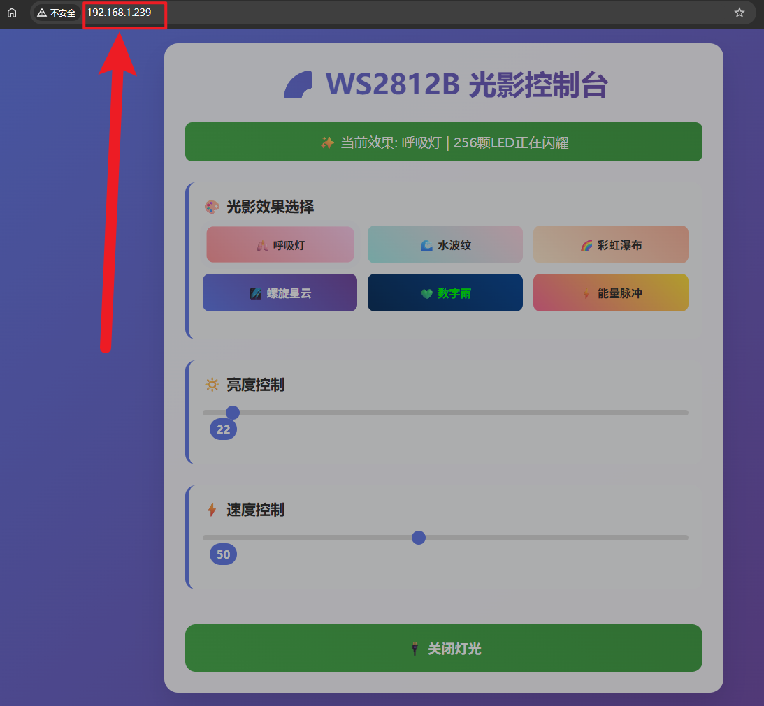 - 在浏览器打开刚刚查看的开发板网络 ip,192.168.1.239