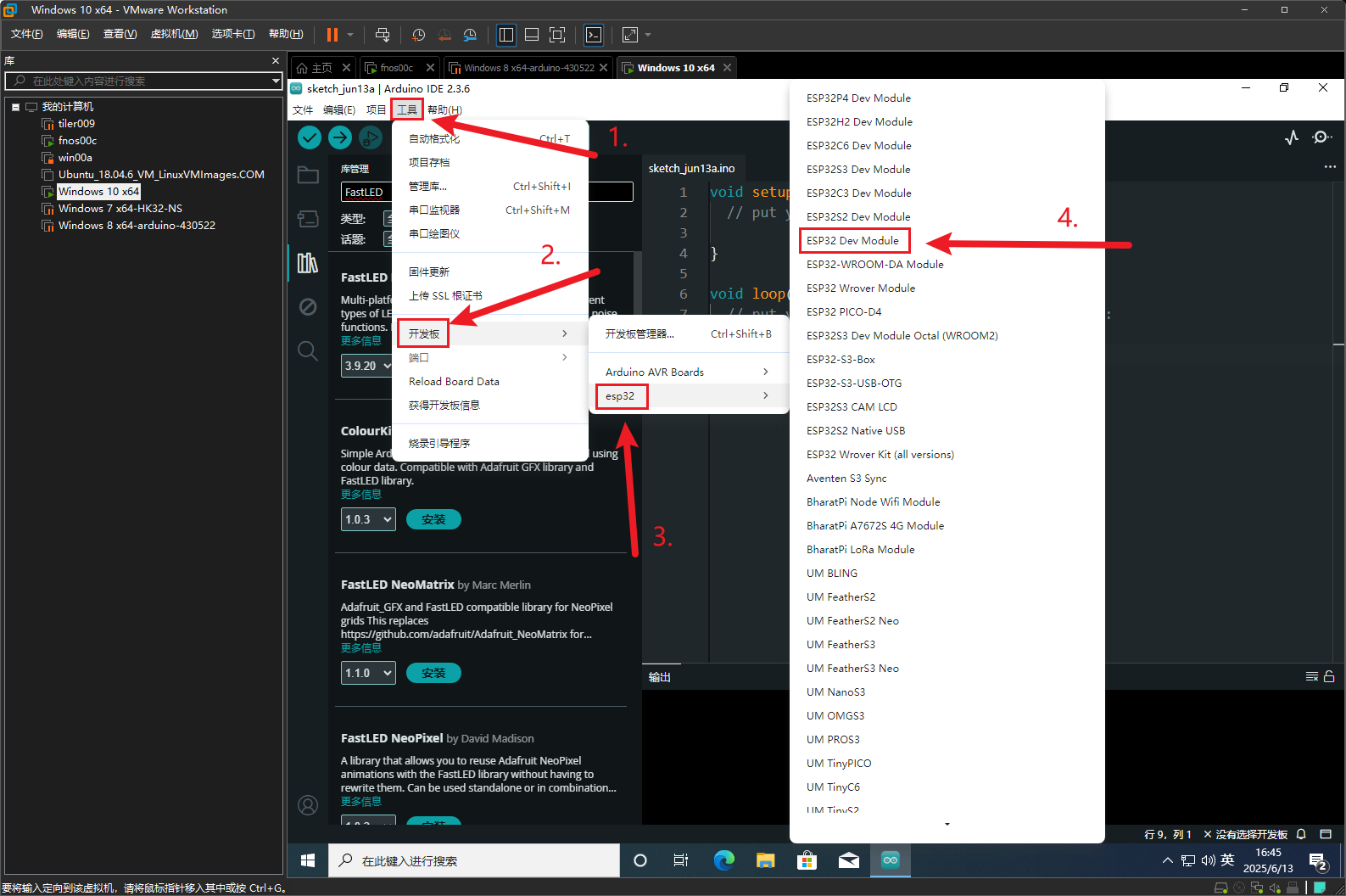 - 工具 (Tools) > 开发板 (Board) 中,选择一款通用的板型,例如 ESP32 Dev Module。